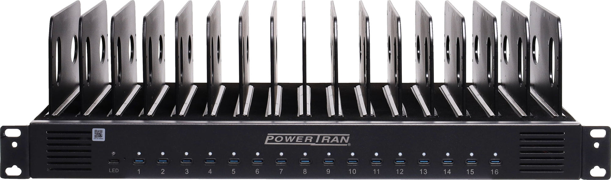 This 16-port USB C charger allows you to charge up 16 USB-C devices at once with a 1000W output. Supporting Power Delivery 2.0 & 3.0 for fast, efficient charging, it’s perfect for laptops, tablets, and smartphones. Built with intelligent temperature-controlled fans, full metal housing, and comprehensive safety protections, this charger delivers reliable, high-capacity performance for schools, offices, or shared workspaces. Can be installed into a 19” rack with the included rack ears.