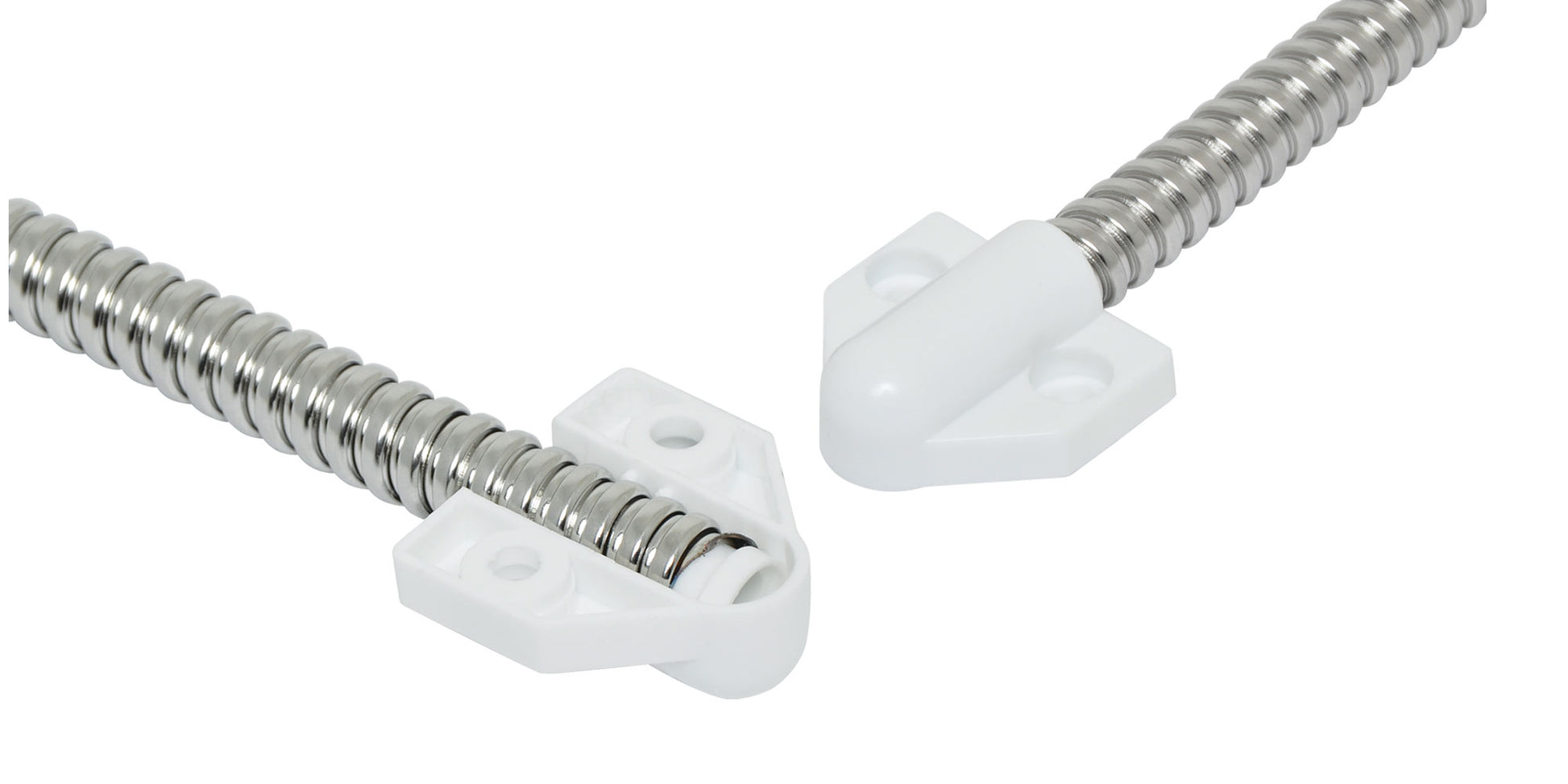 A flexible steel wiring loop for connection of sensors to doors. Includes mounting tabs at each end. 6mm cable entry.
