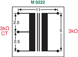An audio coupling transformer is a type of transformer designed for use in audio circuits. Its primary function is to transfer an audio signal from one circuit to another while providing electrical isolation between the input and output sides. M 0222 is rated to 3k Ohm / 3k Ohm.