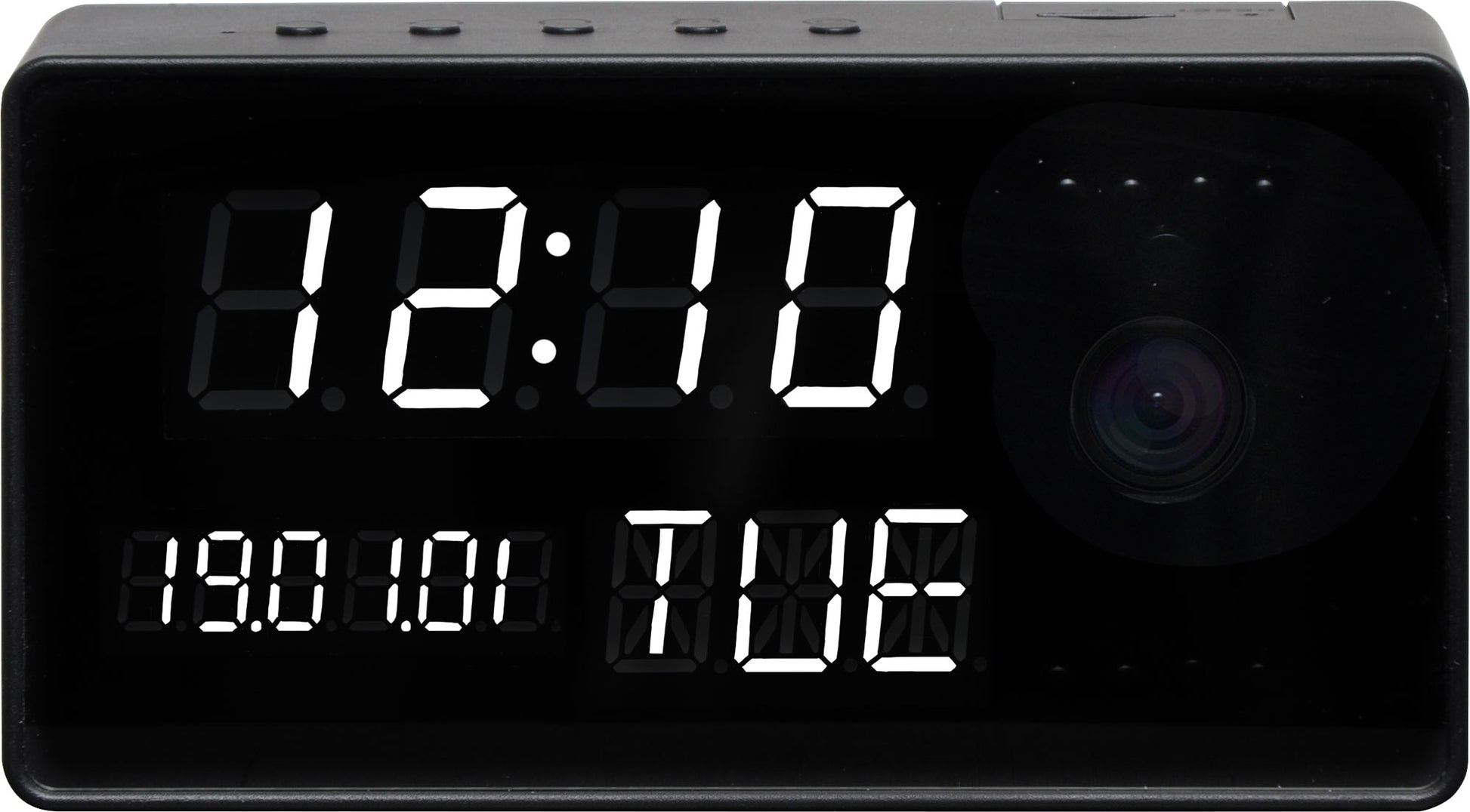 Looks like an alarm clock, but has an in-built 1080p camera capable of streaming directly to your iOS/Android phone via the Tuya SmartLife app. Functions as a normal alarm clock. In-built microphone and speaker for two way communication. Powered by USB input or via 2 x 18650 lithium cells (supplied separately). Ideal for the living room or study. Size: 200 x 179 x 123mm.