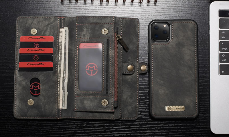 CaseMe iPhone 11 Pro Detachable 2-in-1 Zipper Wallet Case -Black IPH11PROP23BK