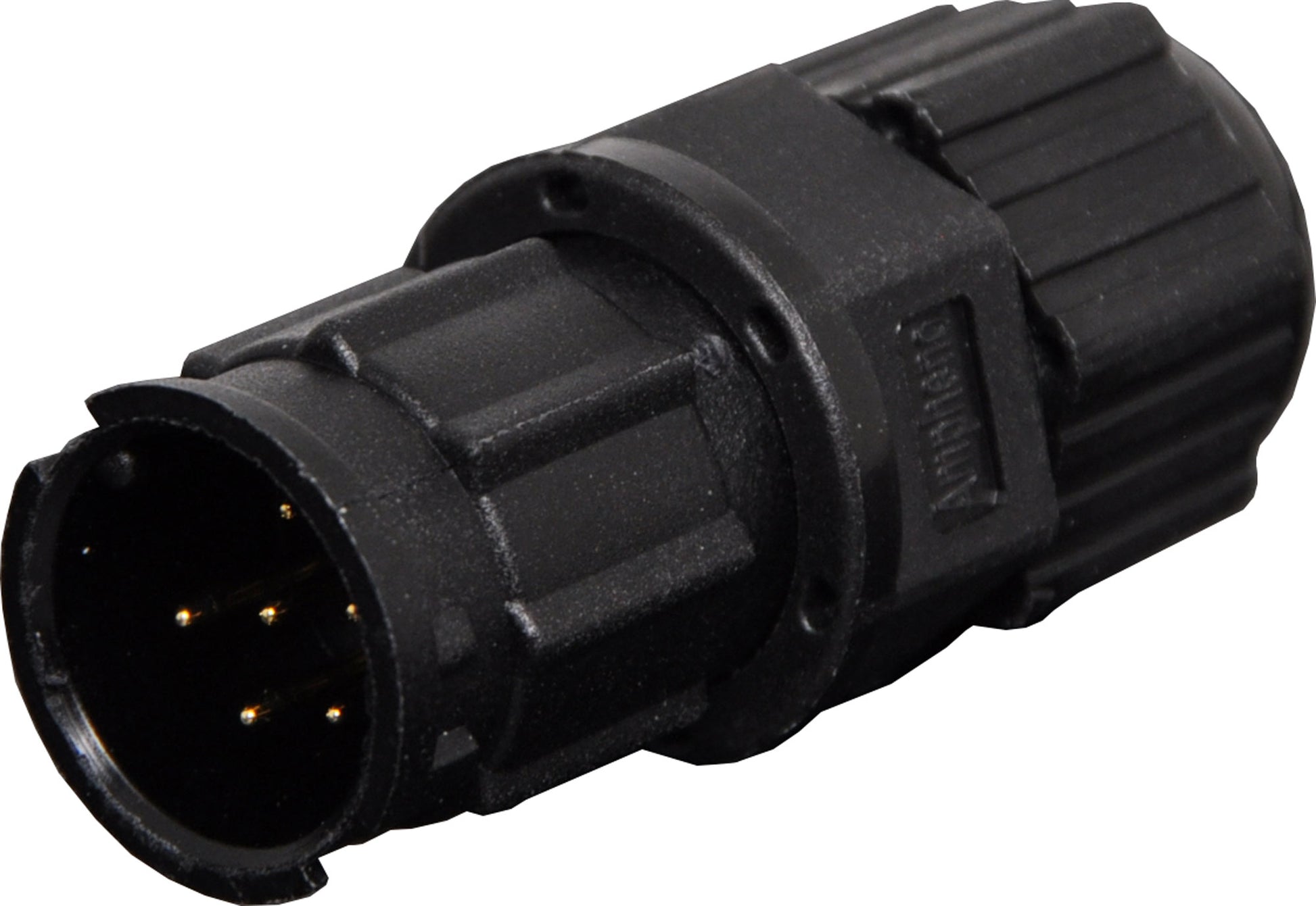 Waterproof IP67 rated 6 Pin male line connector for installations outdoors or in areas prone to moisture build up. 5A rated.
