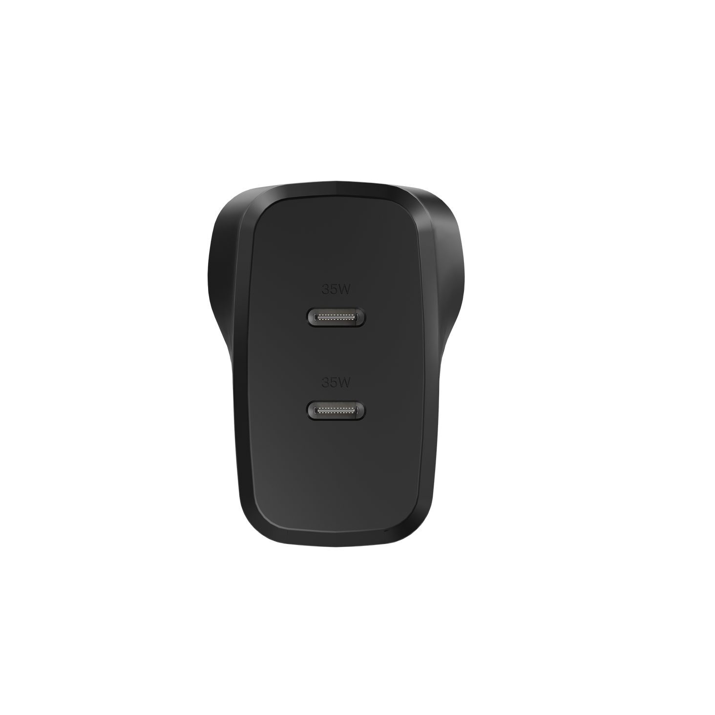 35W Optimal charging for all iPhone models and super fast charging for Android phones. Charge 2 devices simultaneously with up to 35W power distributed from a single USB-C port or across both ports for fast charging. Plug in one device for up to 35W max power or two devices with 35W distributed between them.