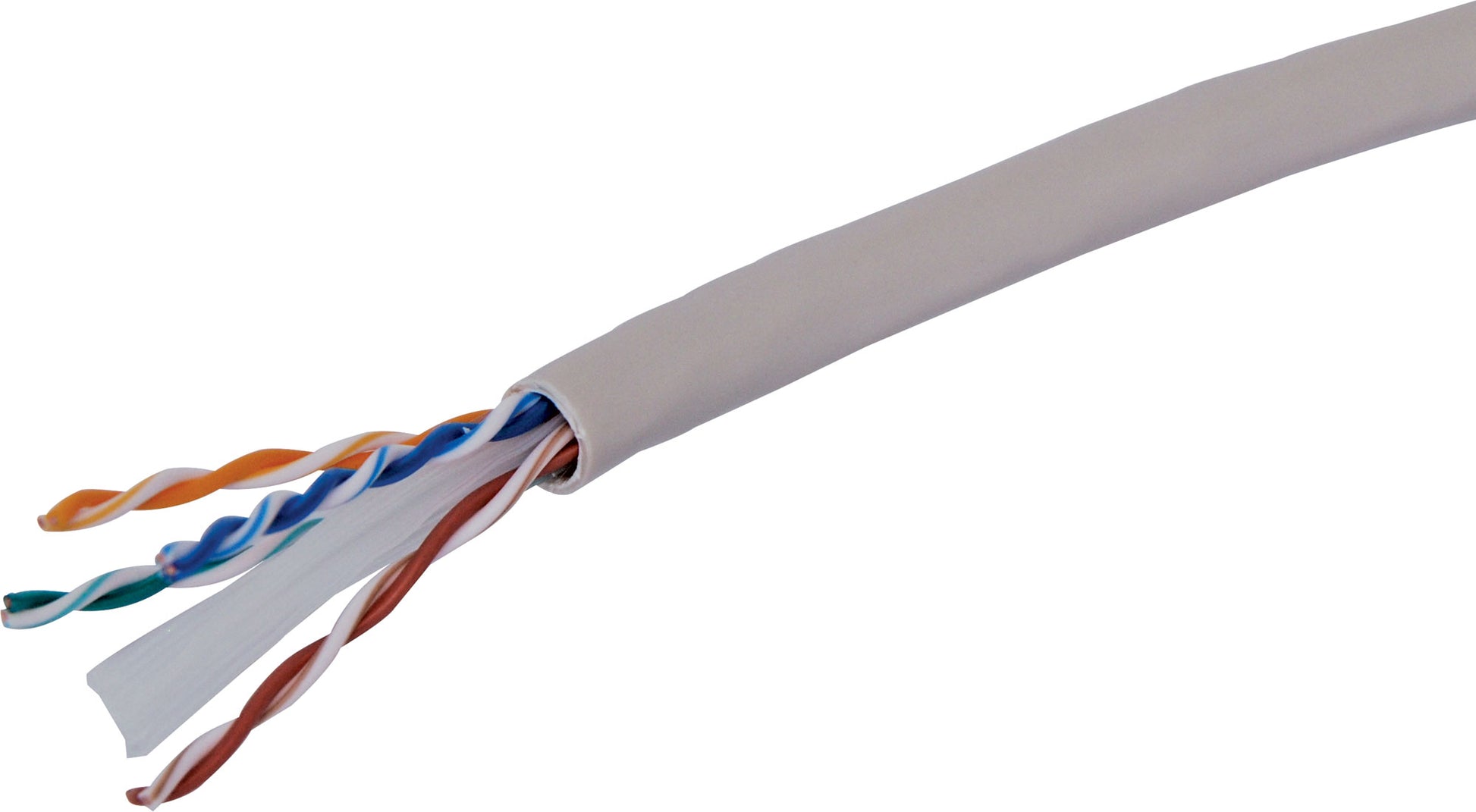 U/UTP (unshielded twisted pair) network cable supplied in a 305m ezy-reel pull box. Contains wooden reel with plastic holder for tangle free cable runs. Solid copper conductors 8 x 1/0.57 (≈0.20mm2 /23AWG). 7.6mm OD.