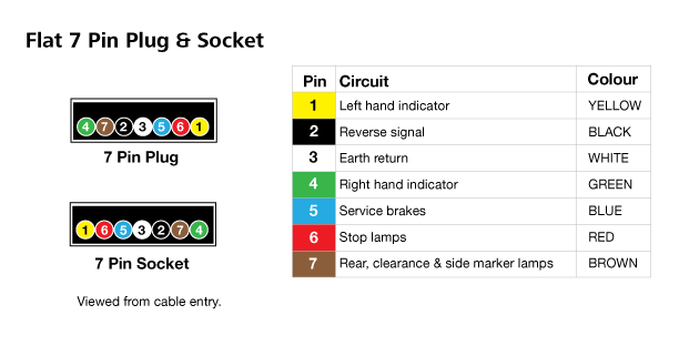 A user wirable 7 Pin flat trailer plug. Connects to the trailer with a 7 Pin flat trailer connector (P8093). Suitable for use with W4222 7 core trailer cable. (Please see accessories listed below)