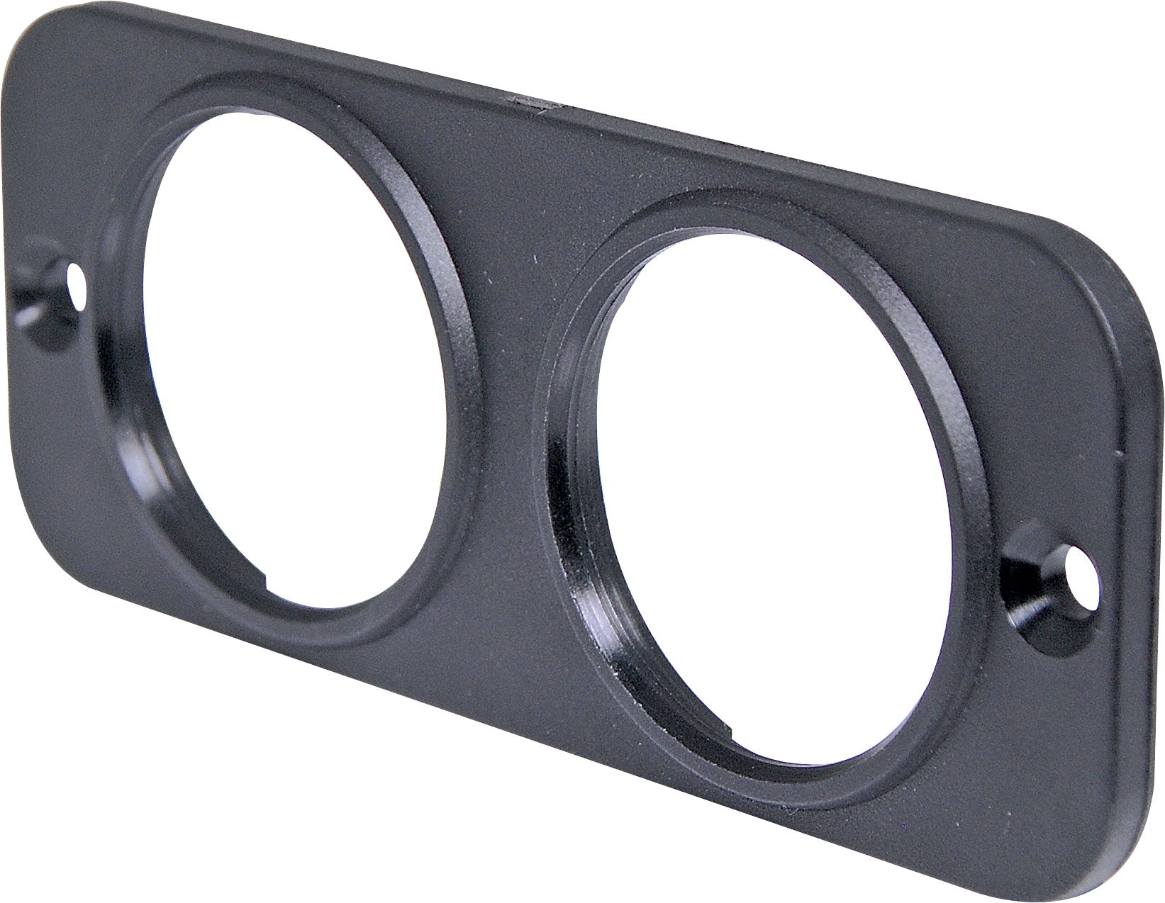 A flush panel mount facia with two holes suitable for mounting P 0675 car accessory socket, P 0677 dual usb charger and P 0672 volt meter.