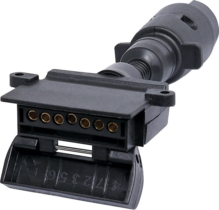 Allows you to connect a trailer with a 7 pin flat connector to a vehicle with large round 7 pin connector. (Please see accessories listed below)