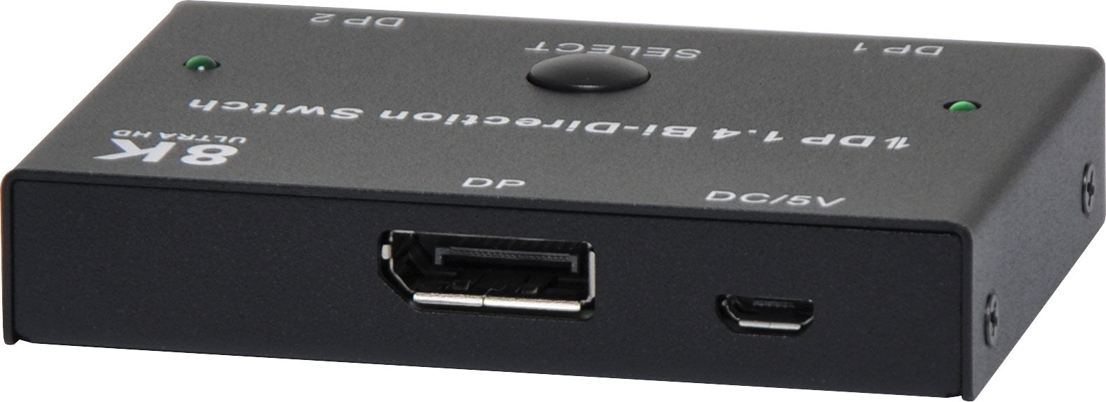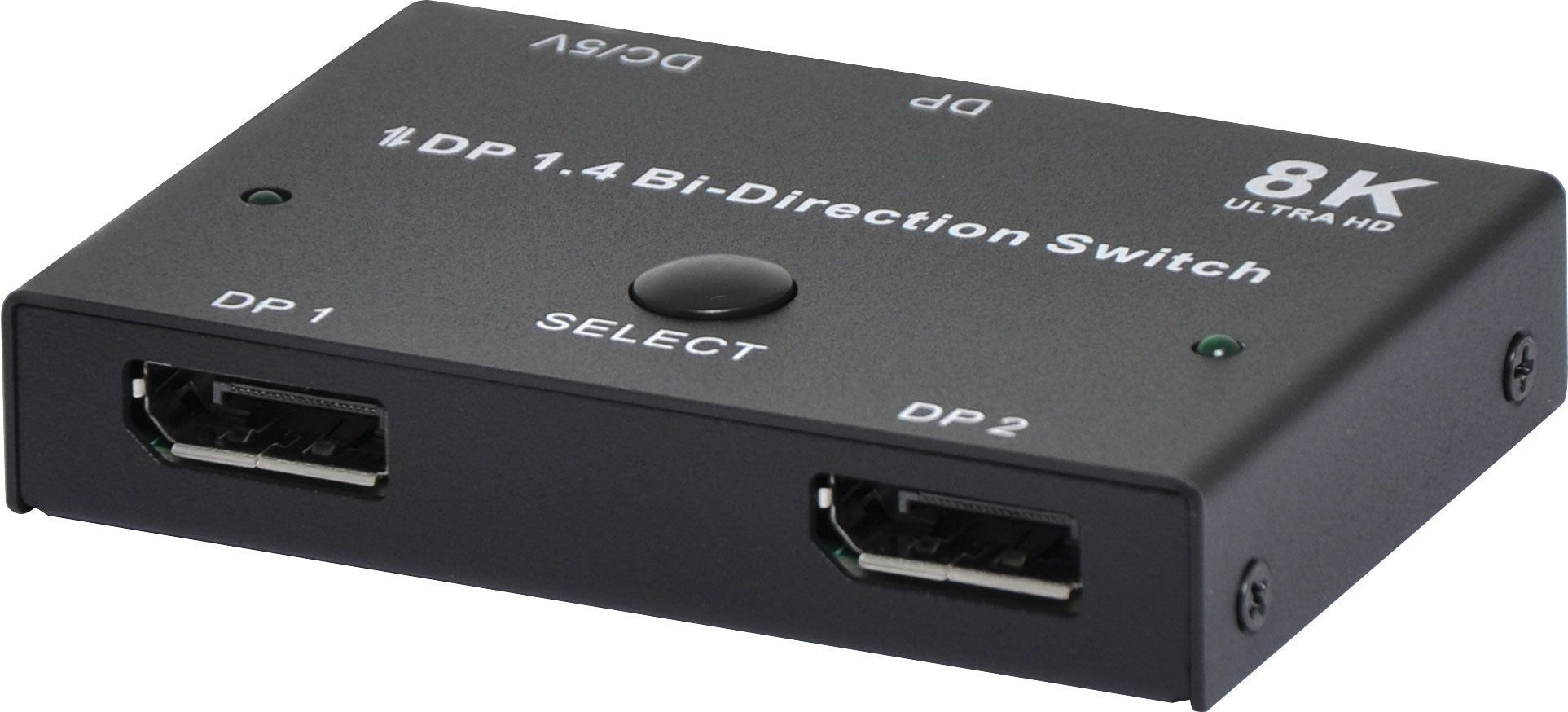 This bi-directional switch allows two DisplayPort equipped computers to be switched to a single monitor OR a single computer to be switched between two monitors. Easy push button operation for switching between devices. Ideal for streamers, gaming or developer applications. Supports resolutions up to 8K @ 30Hz or 4K @ 120Hz. Includes USB cable.