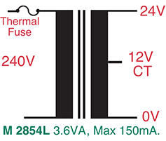 EI Core Transformer 24V / 240V 150mA Centre Tapped EI Core Transformer M2854L