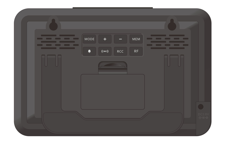 The indoor unit includes both a wall mount fixture and a fold-out stand for multiple display options. It also has a backlight function for low-light viewing situations that can be activated by a simple press of the snooze button.