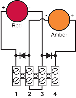 Low current draw dual red and amber coloured strobe lights for emergency evacuation systems. Housed in a sturdy, white powder-coated steel case, this unit is designed for professional installers of fire and evacuation systems. Features simple bolt on installation and conduit knockouts for cable entry. A terminal block allows quick power connection. Can be configured for either two, three or four wire operation.