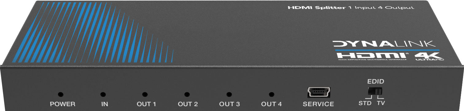 This is a high performance 1x HDMI input to 4x HDMI output switcher which is powered via a USB port. The system supports all 3D TV formats in addition to all HDTV formats up to 4K Ultra HD (3840 x 2160p) @60Hz video. It also supports HDCP 2.2 compatibility.
