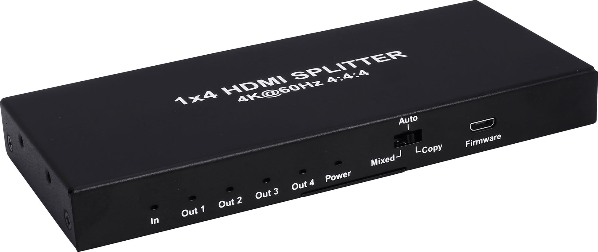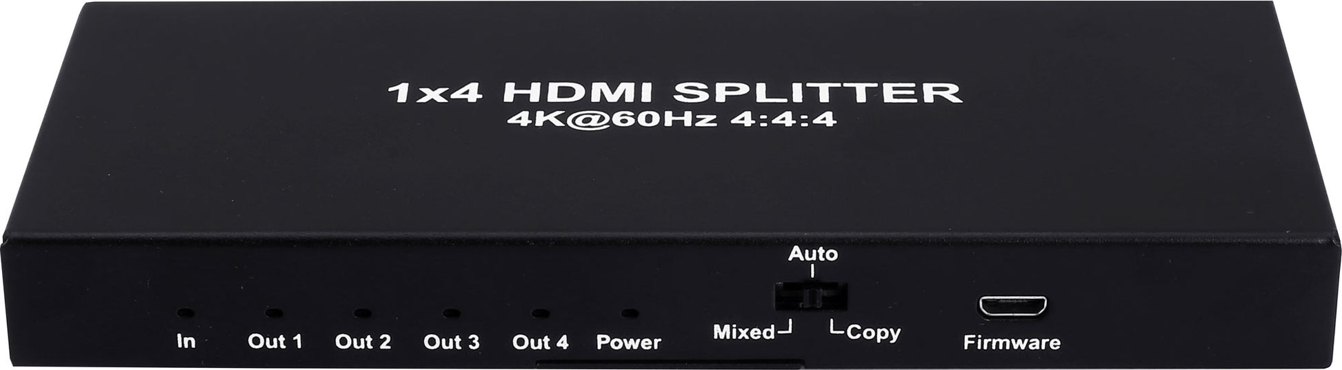 This is a high performance V2.0 - 1x HDMI input to 4x HDMI output splitter. The system supports all 3D TV formats in addition to all HDTV formats up to 4K Ultra HD (3840 x 2160p) @60Hz video. It also supports HDCP 2.2 compatibility.