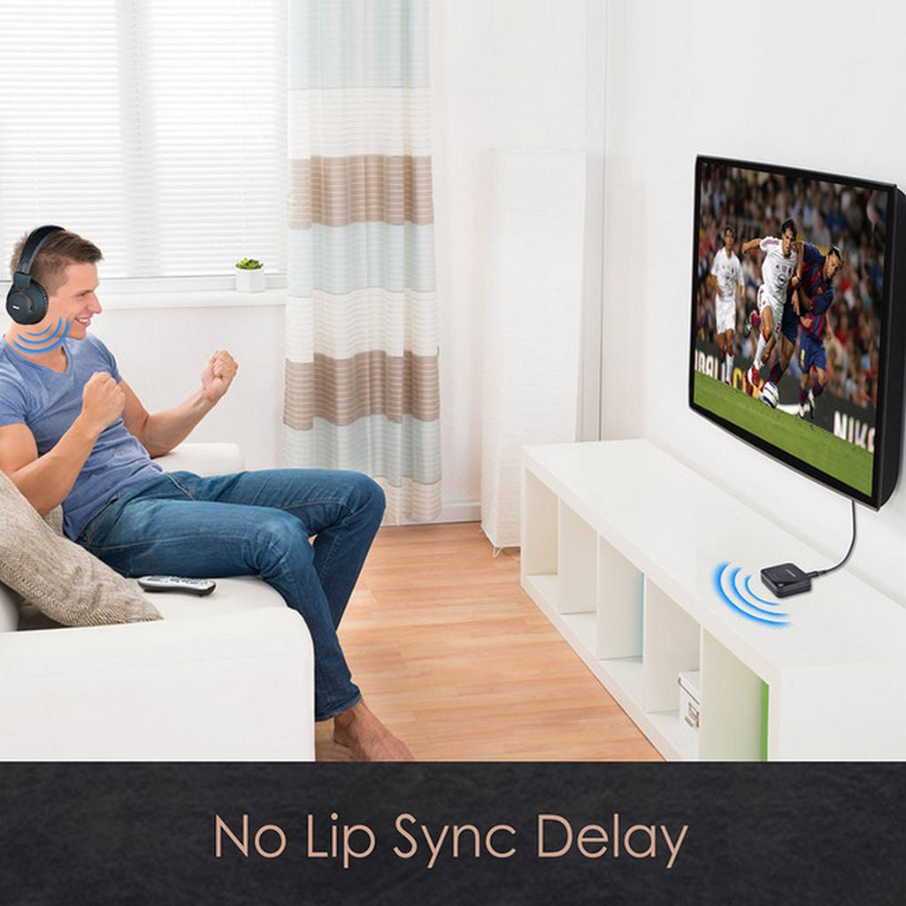 Easy to setup, the Avantree headphone and Bluetooth transmitter connect automatically once they are turned on.