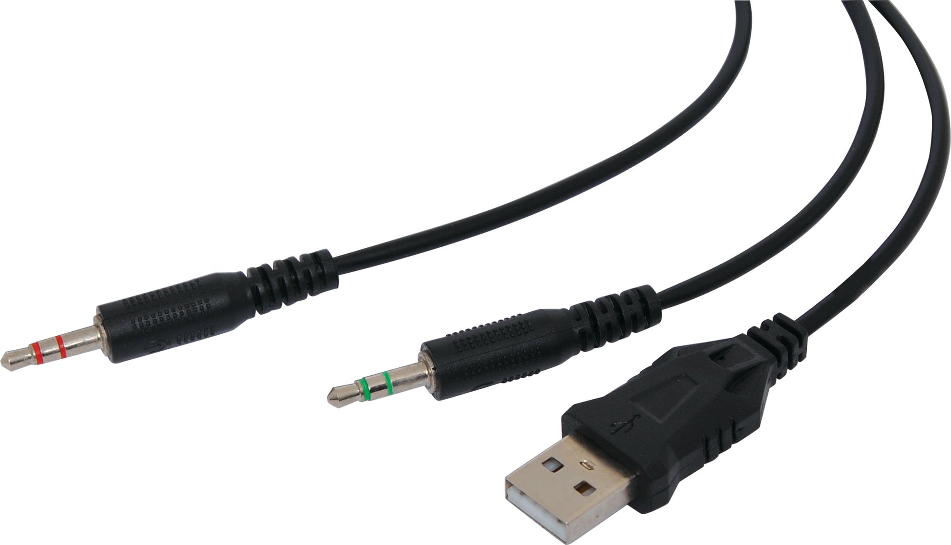 This gaming headset with RGB lighting is ideal for users who love playing video games and want good sound and comfort for long hours playing. Audio is provided through the connection of the 3.5mm jacks (one for microphone, one for audio). The usb connection only powers the RGB lighting effects. A dual 3.5mm socket to 3.5mm TRRS adapter is provided for connecting to game console controllers and mobile devices. Over ear design is great for noise isolation. Cable length: ≈2 metres.