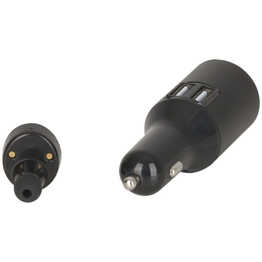 This tiny Bluetooth unit is tiny and smart. It connects to your Bluetooth enabled smart device, then sits in your ear like a small earphone to provide hands free communication. It weighs in at just 5g, and features the simplest recharging weve seen in a while. No fumbling with tiny cables, simply push it into the supplied cigarette lighter adaptor. Small magnets will hold it onto the charger but enable quick release when you need it. One 2.1A and one 1A charging ports are also included on the charger, to power and recharge your devices.