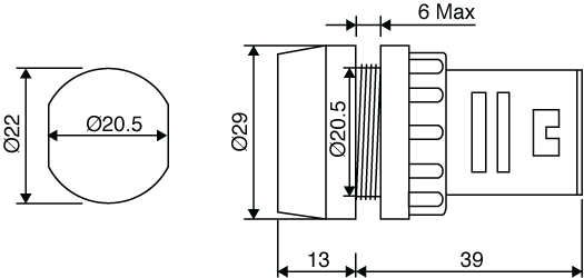 39mm depth from rear of panel. Suits panel thickness up to 6mm.