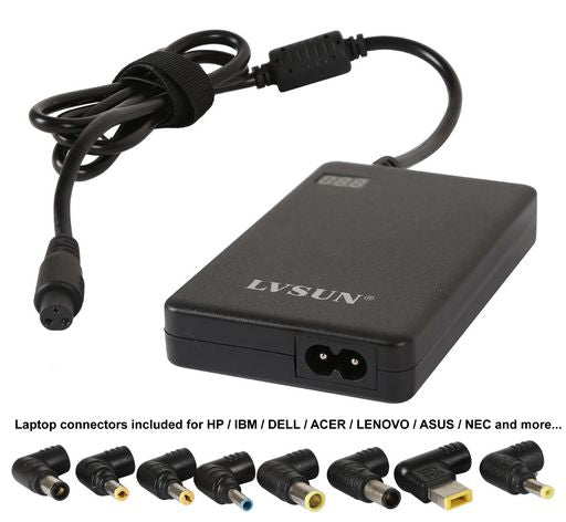 This ultra slim laptop charger has a 17mm thick compact housing, but still enough to supply 90W of power. It also features a built-in 2.1A USB fast charging port and a digital LED working indicator showing working voltage.This laptop power supply features modular tips design, and you can use this laptop charger for different laptops by changing the DC charging tip. This power supply uses the LS type replaceable charging tips. There are 8 different tips included for free to suit many popular laptop models. Additional plugs are available for purchase for other laptop models.