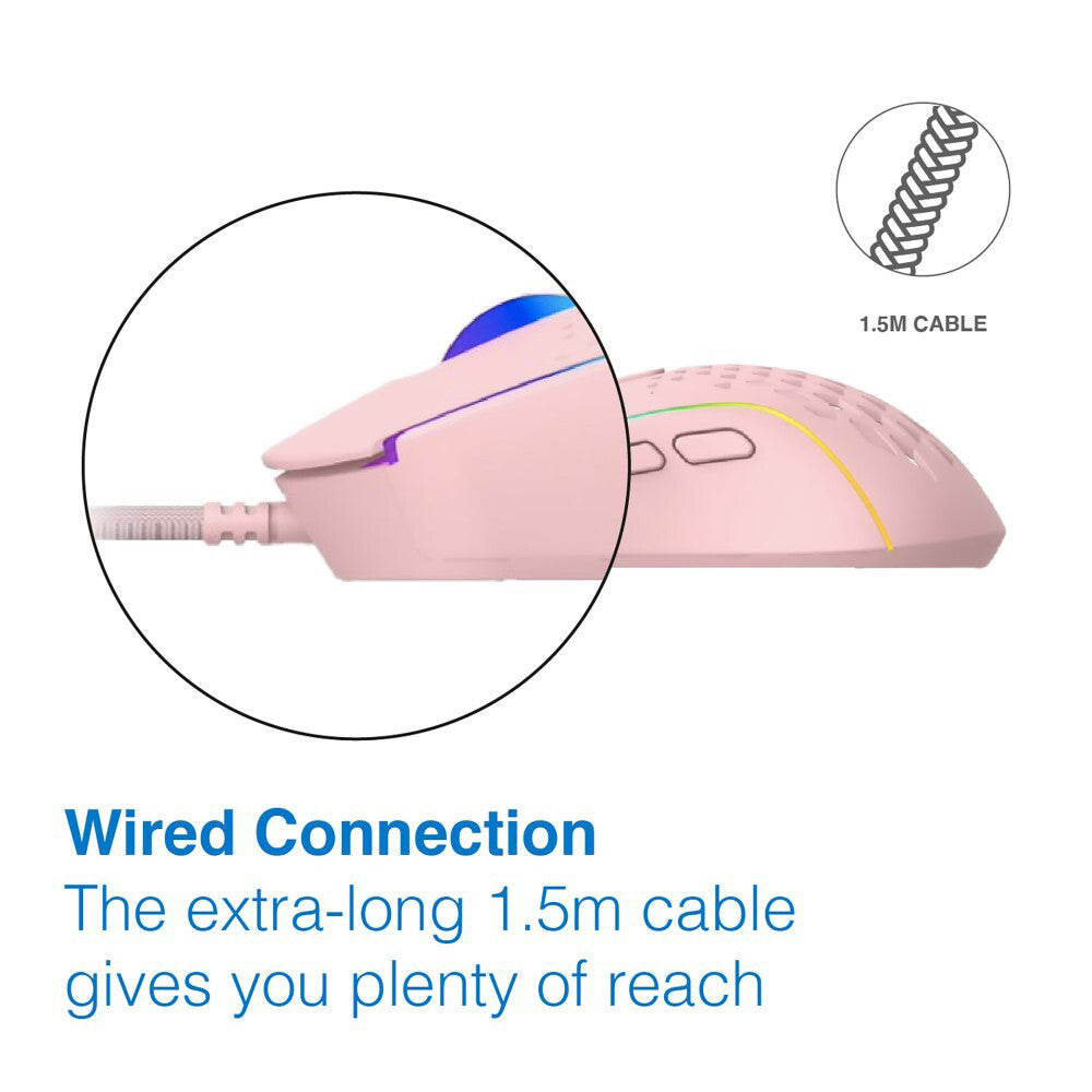 LASER Wired Gaming RGB Mouse Pink 12800 DPI MSE-M1210-PK