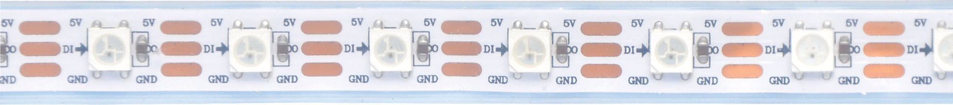 This decorative WS2812B RGB LED strip features on-board chips to control the colour of each individual LED using open source platforms such as Arduino and Raspberry Pi. This allows for it to be controlled individually, which makes it ideal for programming and producing dynamic and creative effects. 60 LEDs per metre. 5V DC input. Weatherproof rated at IP67 for indoor or outdoor use.