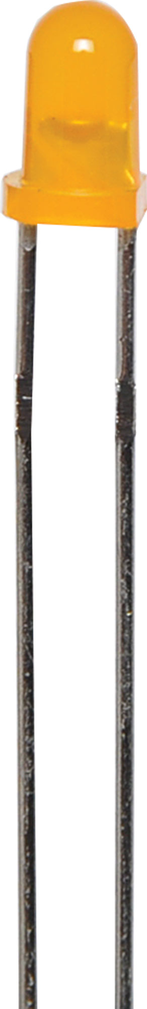 Standard type 3mm orange LED. Diffused light with orange tinted flanged housing. 40mcd light output makes it ideal as a low level indicator for power/signal etc.