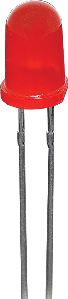 Standard type 5mm red LED. Diffused light with red tinted flanged housing. 9mcd light output makes it ideal as a low level indicator for power/signal etc.