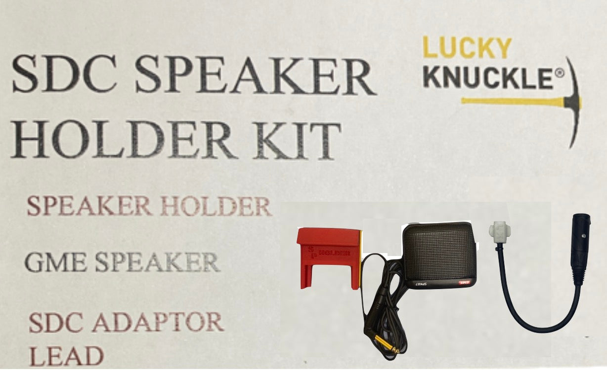 Lucky Knuckle SDC Speaker Holder Kit includes a very high quality GME external speaker that comes with a steel clip on the back to attach to your harness or belt.