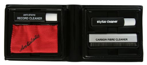 Kits include carbon fibre brush, stylus cleaner, vinyl cleaning fluid and cloth packaged in a case for easy storage. Kit 2 has the addition of a CD cleaning fluid and cloth.