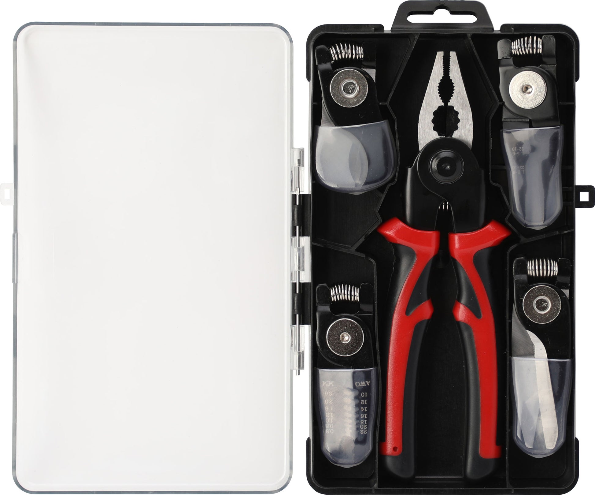 This versatile 5-in-1 plier set features interchangeable heads designed for a range of tasks. Each head fits securely into the ergonomic handle using high-strength magnets, ensuring quick and easy swaps. Compact and convenient, it’s ideal for workshop and DIY use—perfect for wire cutting and stripping, crimping connectors, trimming thin materials, and more. By combining five essential tools into one, this set saves valuable space in your toolbox. Everything is neatly organised in a handy, portable carry case.
