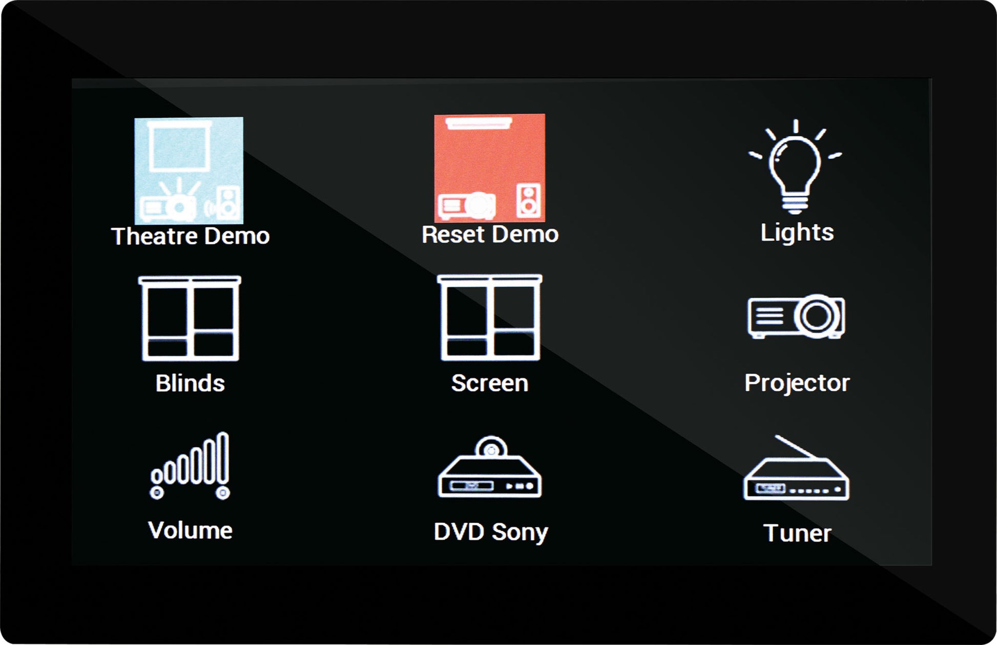 This universal 7" touchscreen wall plate is the perfect control system for commercial and domestic automation. Its stylish low profile design lends itself to installation in new modern homes, classrooms, lecture theatres or corporate boardrooms. The LCD panel can be configured from 1 to 12 buttons, which can be individually labelled. Configuration is performed using the supplied software, which is then transferred to the plate via SD card. A library of button icons is included. Icons can be customised by the user if required. Each button can be programmed for either serial with hex code commands, IR, or relay control.