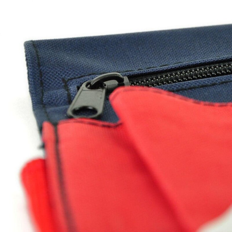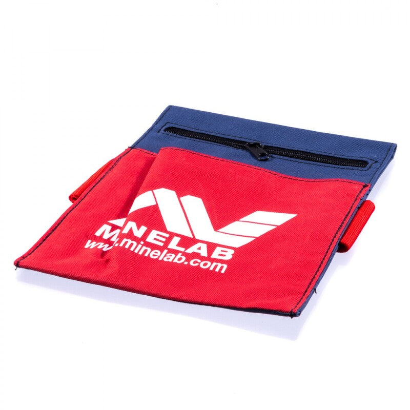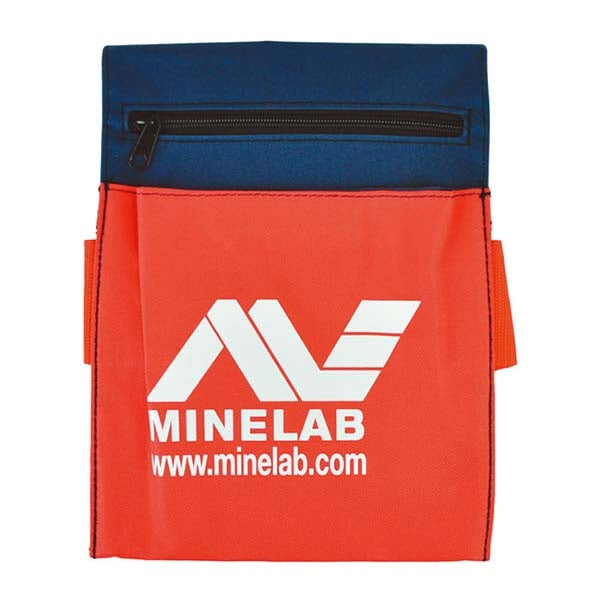 Minelab tool & Finds Bag is made of durable synthetic material. It is red & navy & has Minelab logo. It will hold finds, rubbish & small digging tools. It has a belt pocket, so will slide onto a belt & can be worn on the hip.
