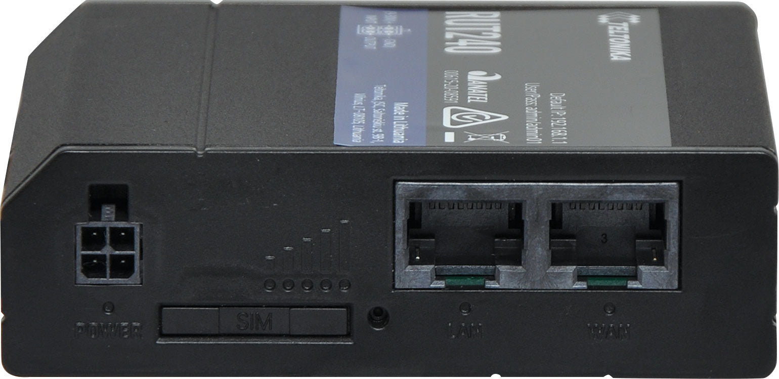 The Teltonika RUT240 is a compact, cost-effective and powerful industrial LTE router for professional applications. Router delivers high performance for mission-critical cellular communication. Equipped with external SIM holder and signal strength status LEDs, it ensures easy network management. External antenna connectors make it possible to attach desired antennas and to easily find the best signal location. Dimensions: 83 x 74 x 25mm (H x W x D)