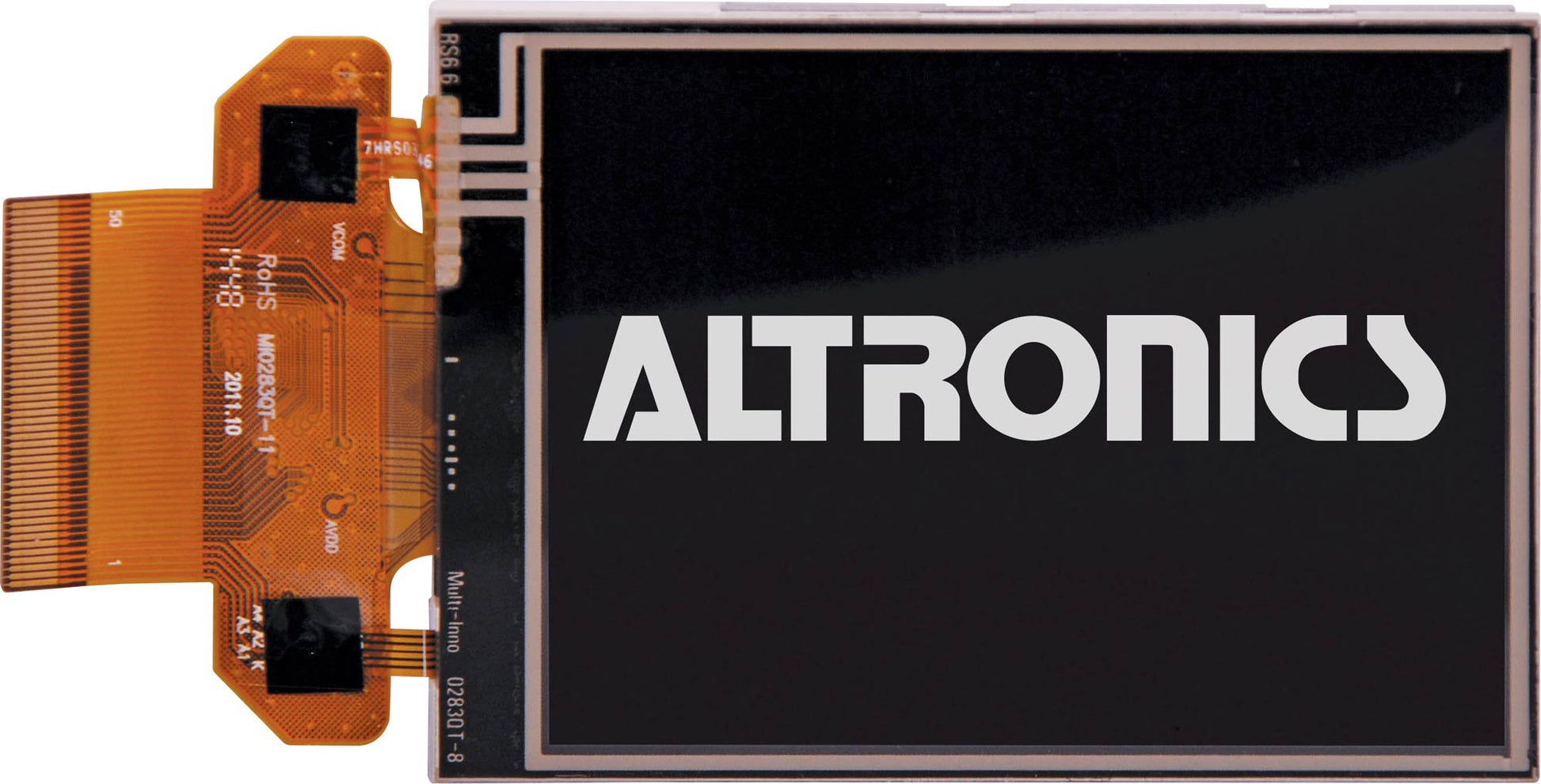 320x240 LED backlit 2.8 inch 64K colour touchscreen TFT display.