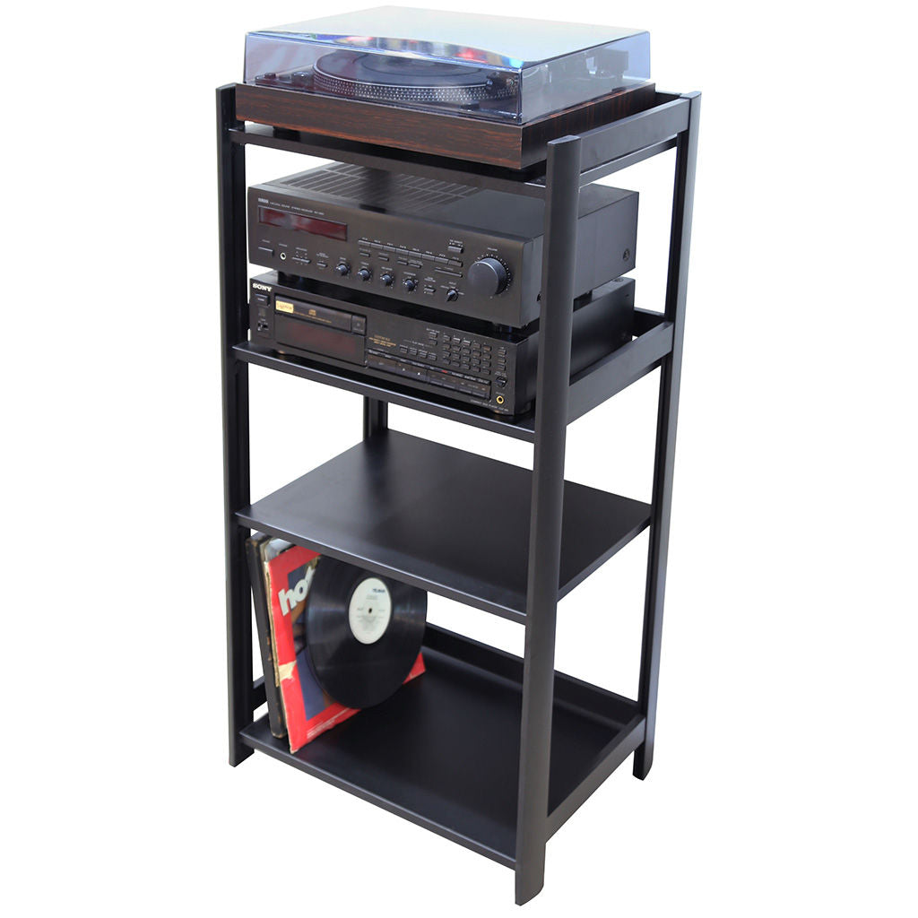 Modern styling storage rack that is suitable for home or office shelving and ideal for HiFi component system setups. Sturdy anodised extruded aluminium frame with legs that have end caps for a sleek modern appearance. All metal fastenings and assembly for a toughened long-life shelf system that is cosmetic for decor. Wooden shelving is laminated with a hardened attractive covering. Screw-lock adjustable height for a versatile solution to suit many applications.- Strong & Sturdy shelving for internal decors.