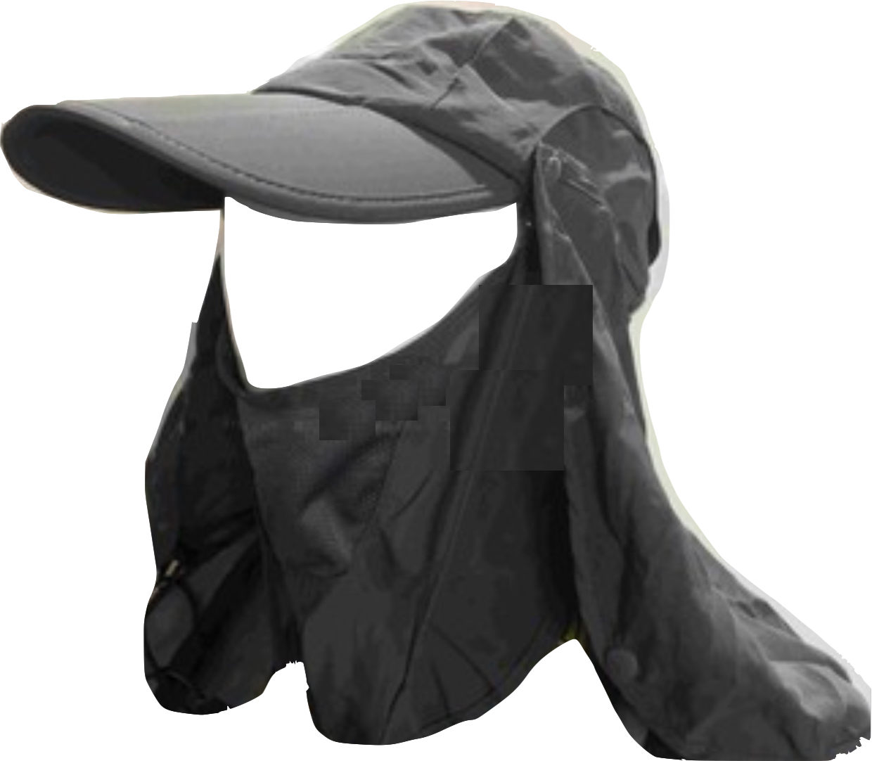 - Comfortable, lightweight nylon cap with neck and face panels for protection against the harsh sun. Panels are also removable with a snap lock system