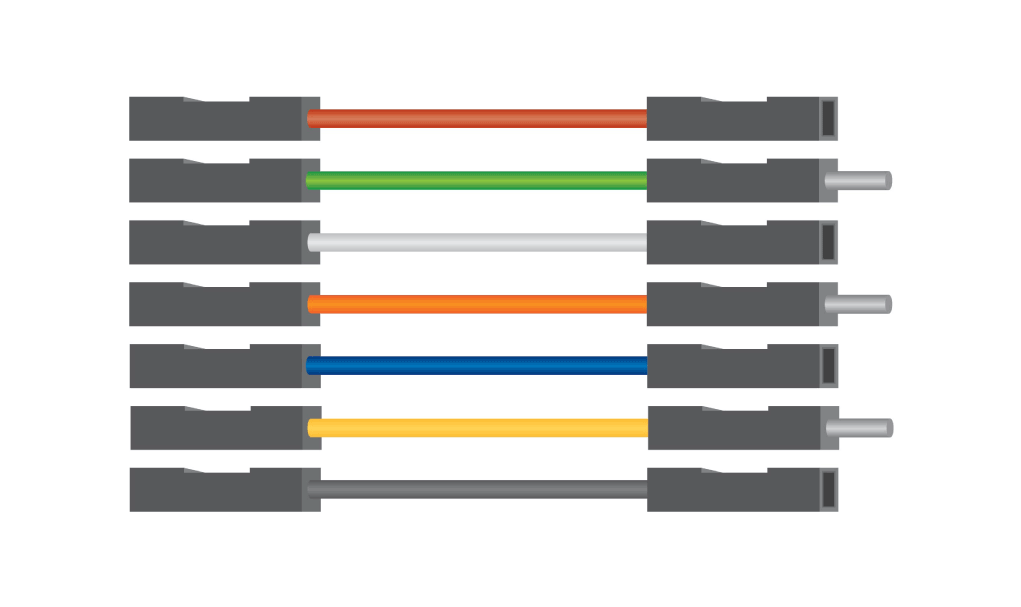 Multi-colour reusable leads for prototyping and working with development shields. Pin to socket (male to female) and socket to socket (female to female) type. 60 pieces.