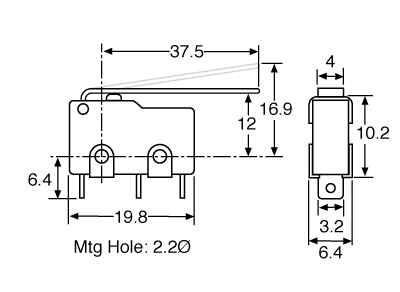 Push Button Switch 37mm Lever SPDT Momentary Solder Tail Microswitch S3265