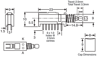 Push Button Switch 4PDT PCB Mount LED Yellow S1452