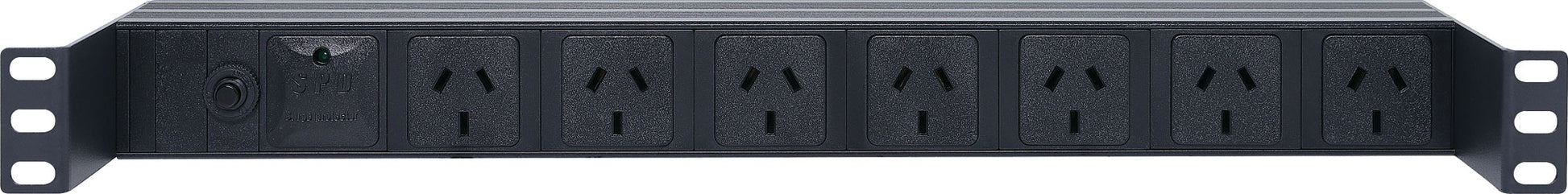 The neat solution to supplying mains power to your rack mounted equipment. Simply screw this panel to your rack and plug the equipment in. This 1RU model offers surge protection for 7 Australian Main sockets. Includes overload circuit breaker. Fitted with a 2m heavy duty 10A lead. This product is SAA approved.