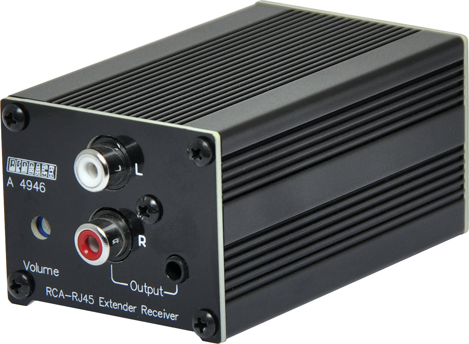 This Stereo RCA UTP receiver accepts signals from compatible Redback UTP solutions transmitters and converts the signal to a stereo RCA output. The output volume is screwdriver adjusted via the trimpot on the front of the unit.