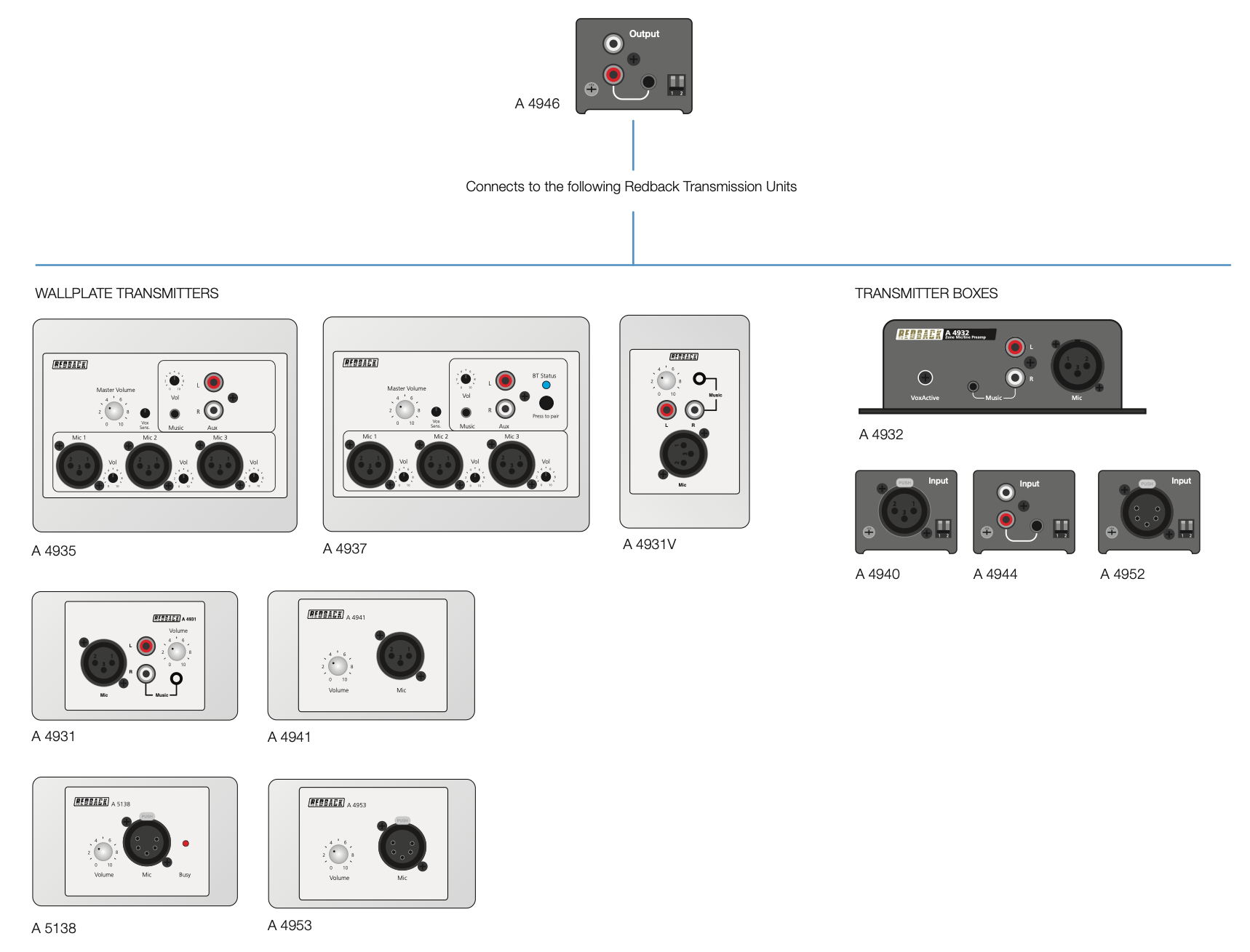The Redback A 4946 can be connected to compatible Redback products such as the A 4940 and A 4944.