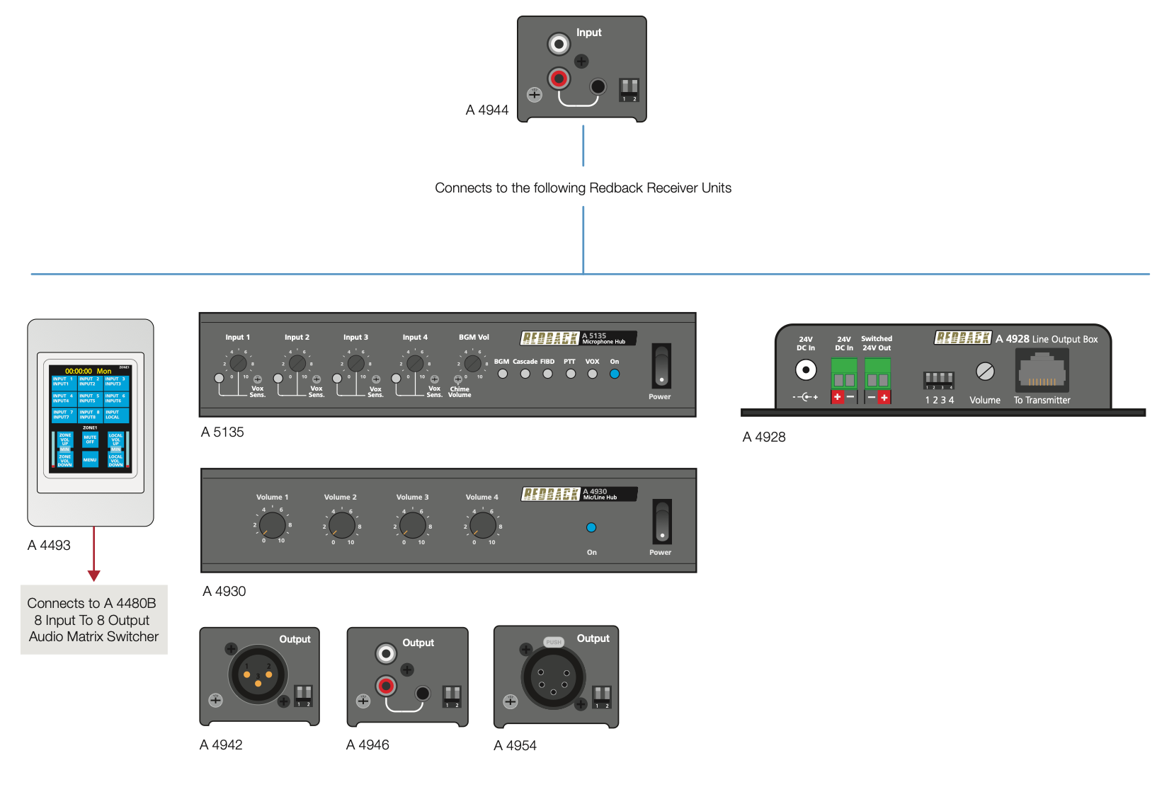 The Redback A 4944 can be connected to compatible Redback products such as the A 4946.