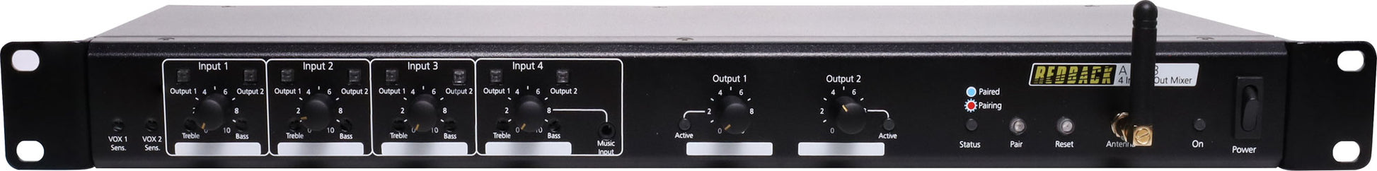 Redback 4 Input, 2 Output Pa Mixer With Bluetooth A4423