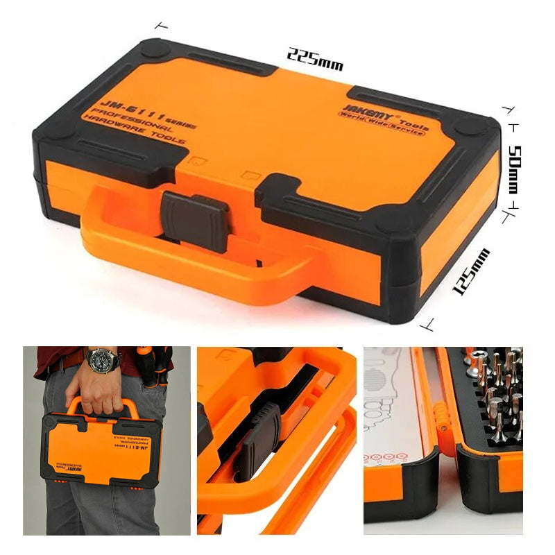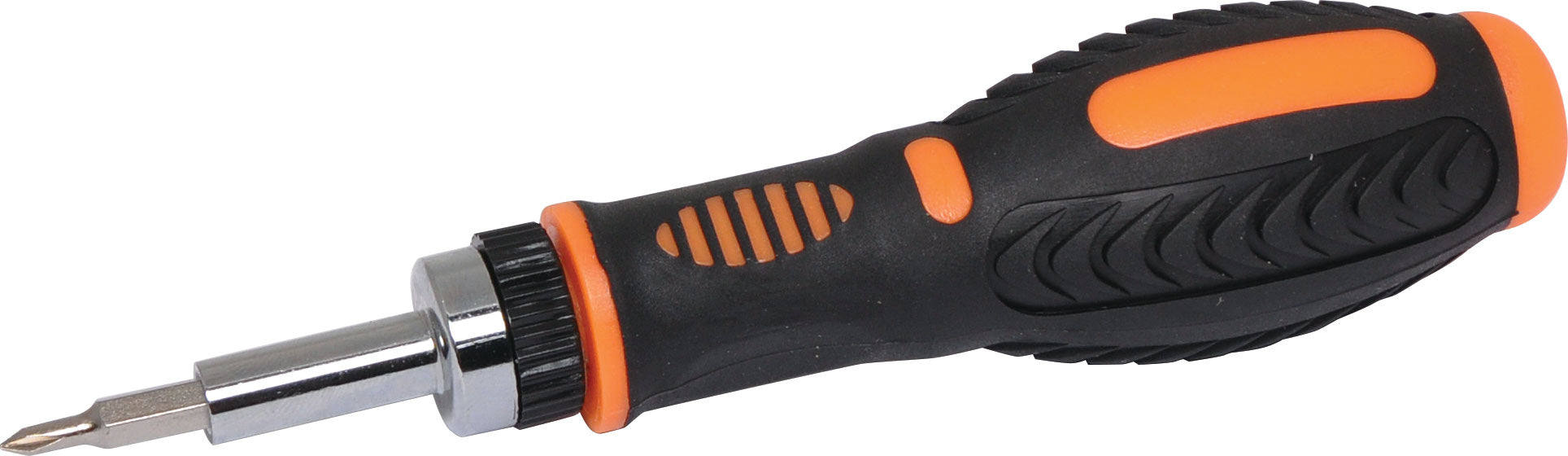 Superb quality ratchet driver with a wide selection of bits for most electronic jobs. Includes both a 1/4” adjustable angle (<90°) ratchet handle and a smaller 4mm ratchet handle. Great for the home handyman or enthusiast. It features a comfortable soft rubber handle for all day use.