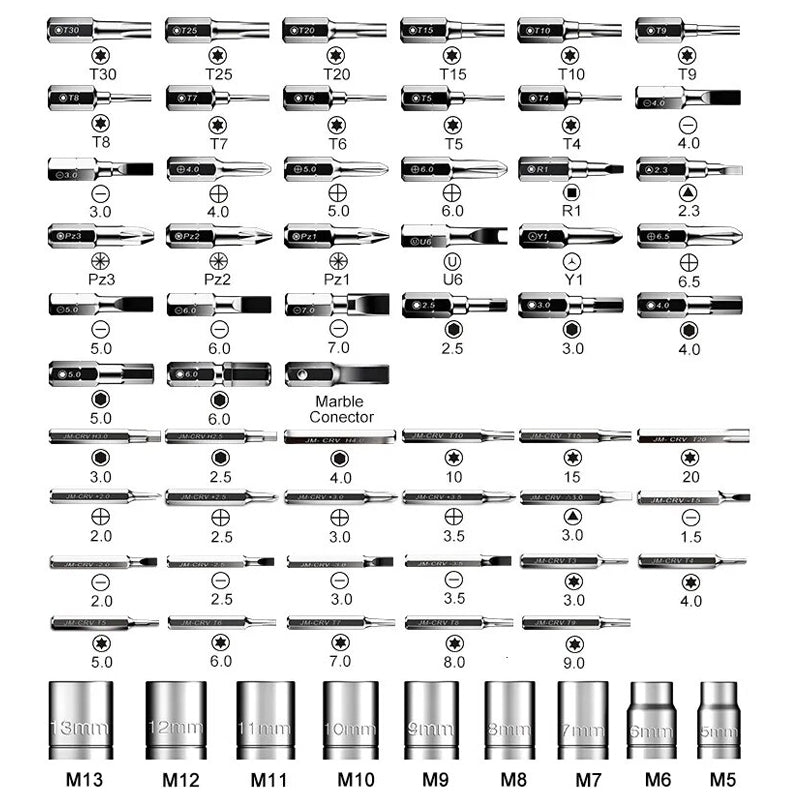 - Security torx: T4, T5, T6, T7, T8, T9, T10, T15, T20, T25, T30