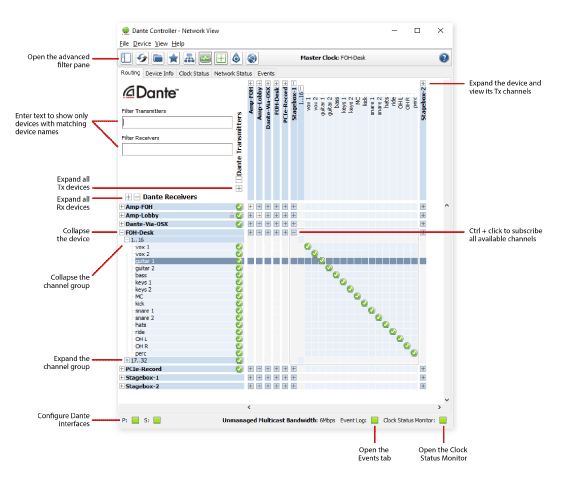 - Selectable Dante Sample Rates: 44.1 kHz ~ 96 kHz.