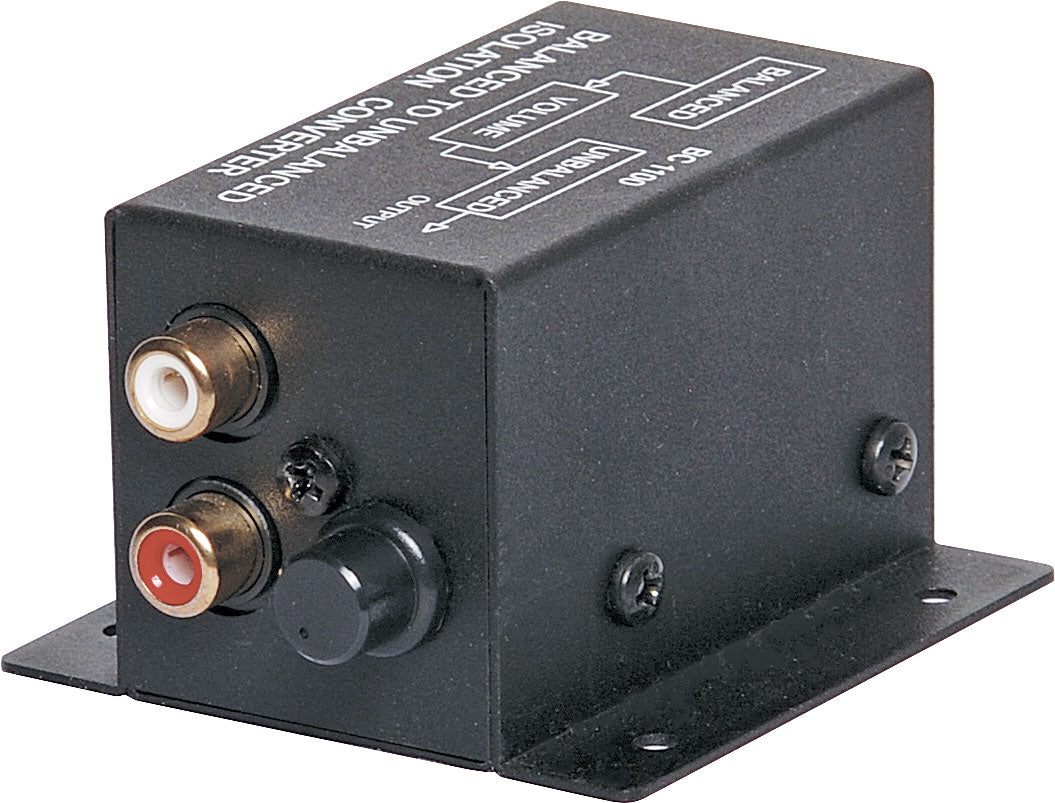 Balanced 600 Ohm 3 pin female XLR to unbalanced 10K Ohm 2 x RCA with level control. +10dB max signal gain. Steps up input signal by factor of 16, ie 20mV in = 320mV out.