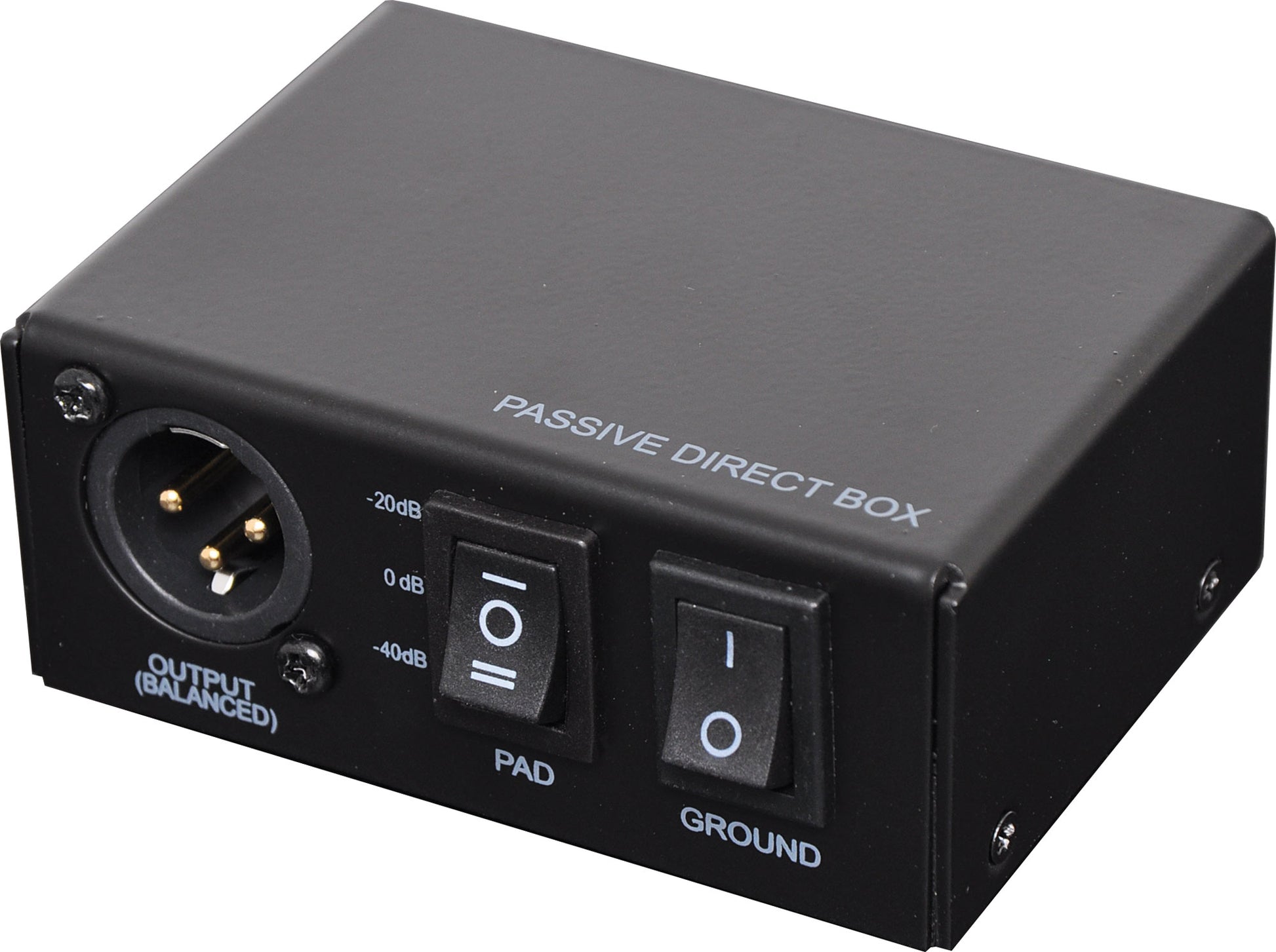 This direct injection (DI) box is used to convert high impedance unbalanced signals from musical instrument pickups to a low level balanced output. This enables the signal to be transported over long distances without picking up noise or hum. Earth and hum loops are isolated from powered equipment such as keyboards.