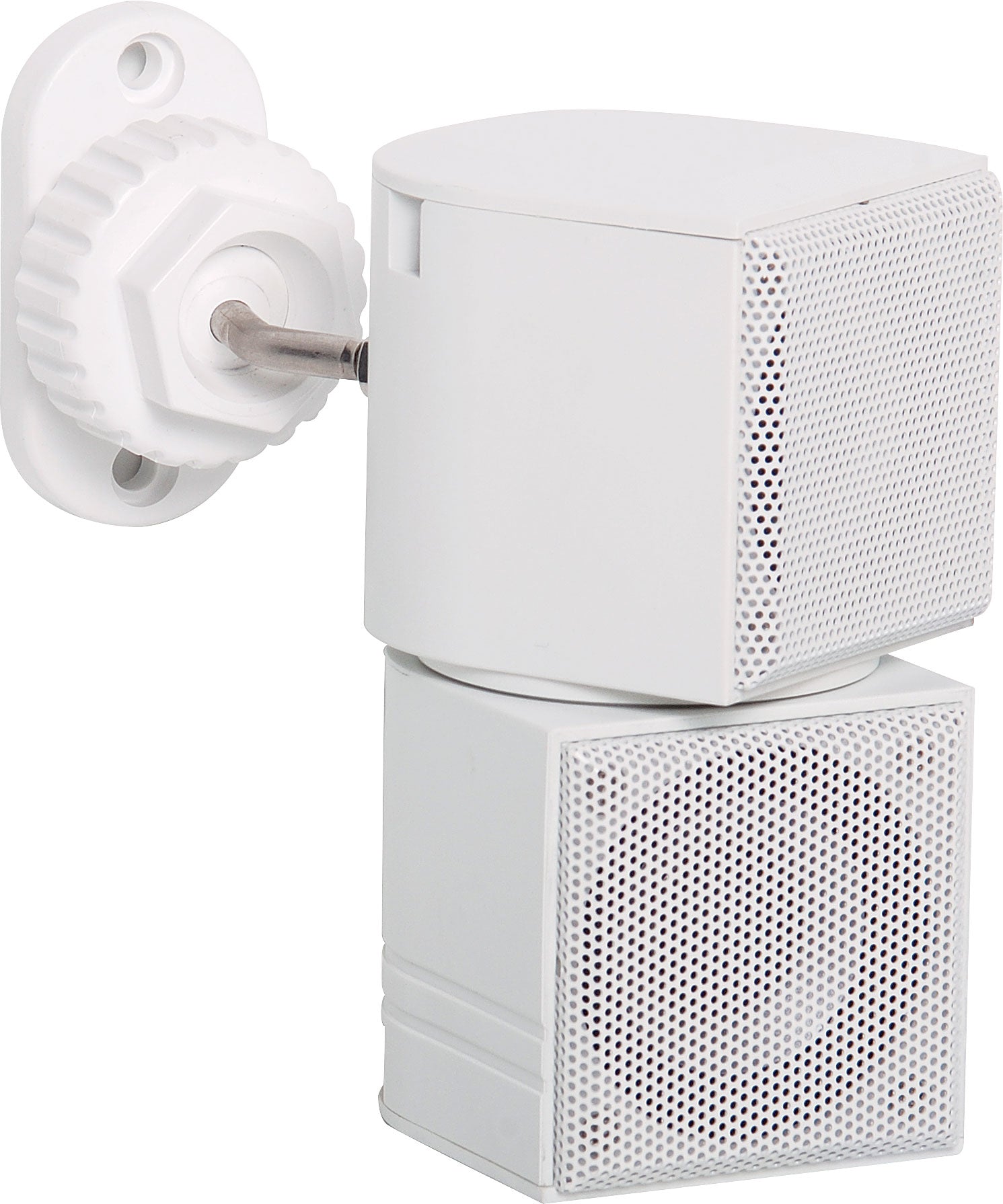 Wall mount bracket with adjustable ball joint to suit wall mount speakers. M6 thread. Speaker for illustration purposes.