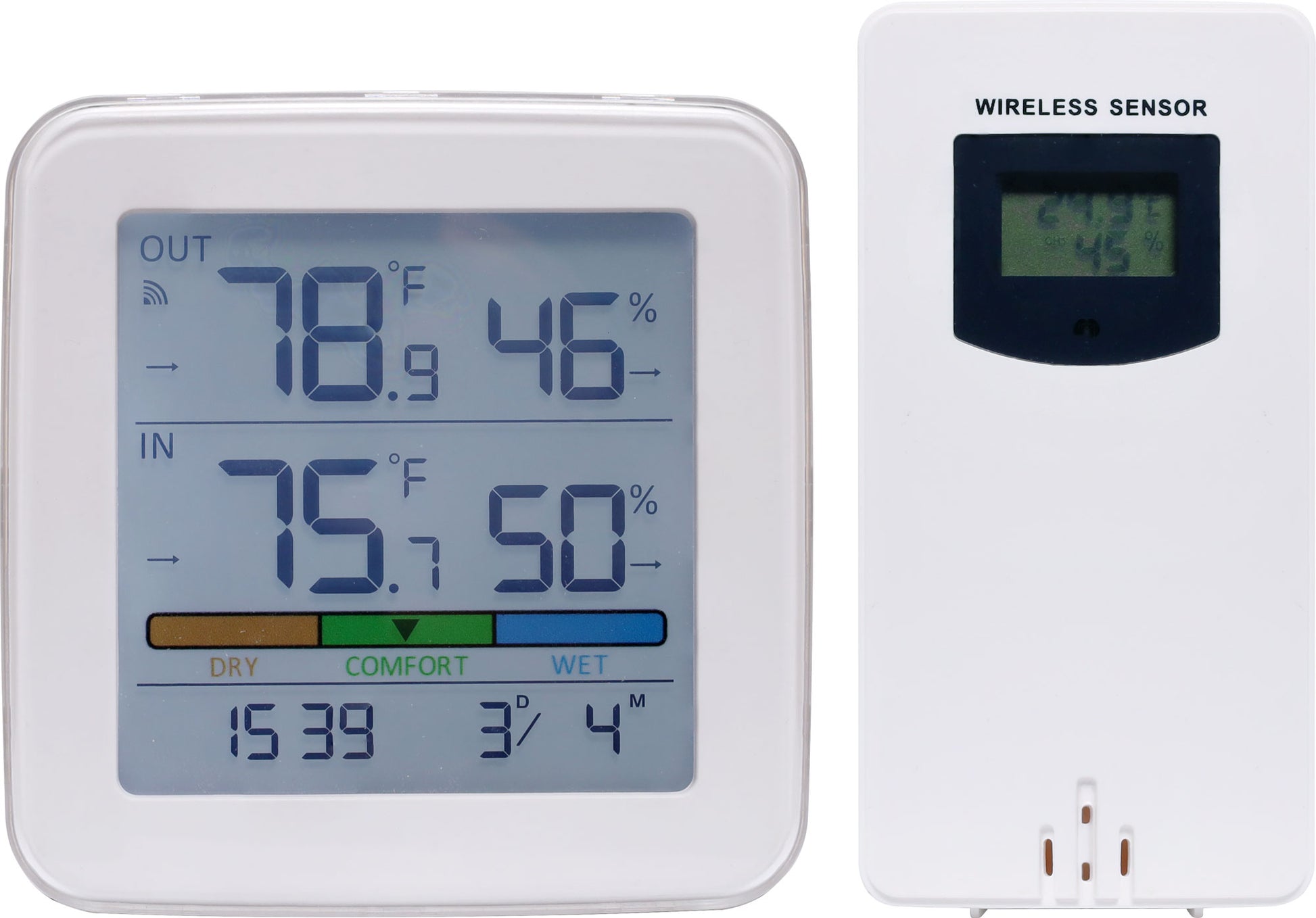 - Size: 89 x 89 x 25mm (base station), 50 x 96 x 32mm (sensor)